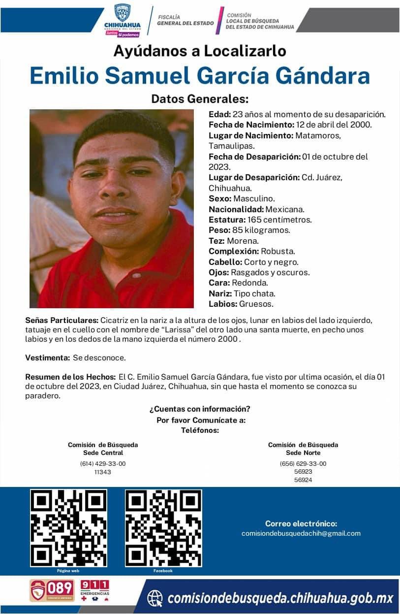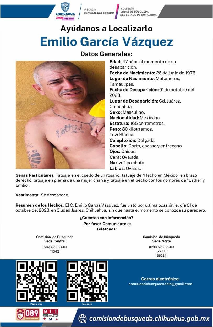 Matamoros, Tamaulipas. - Sumidos en el llanto y la desesperación, familiares de Emilio García Vázquez y Emilio Samuel García Gandara, padre e hijo, respectivamente, de oficio yeseros desaparecidos en Ciudad Juárez, Chihuahua el pasado 1 de octubre, imploran que se les ubique para que puedan volver a casa de donde partieron para buscar un mejor ingreso.