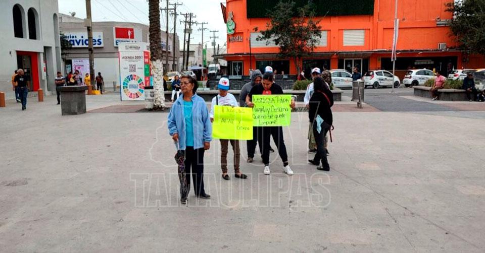 Reynosa, Tamaulipas. - Familiares de una mujer y su hija que fueron localizadas sin vida en la cajuela de un vehículo, se manifestaron en Reynosa en demanda de una investigación eficaz y que se haga justicia.