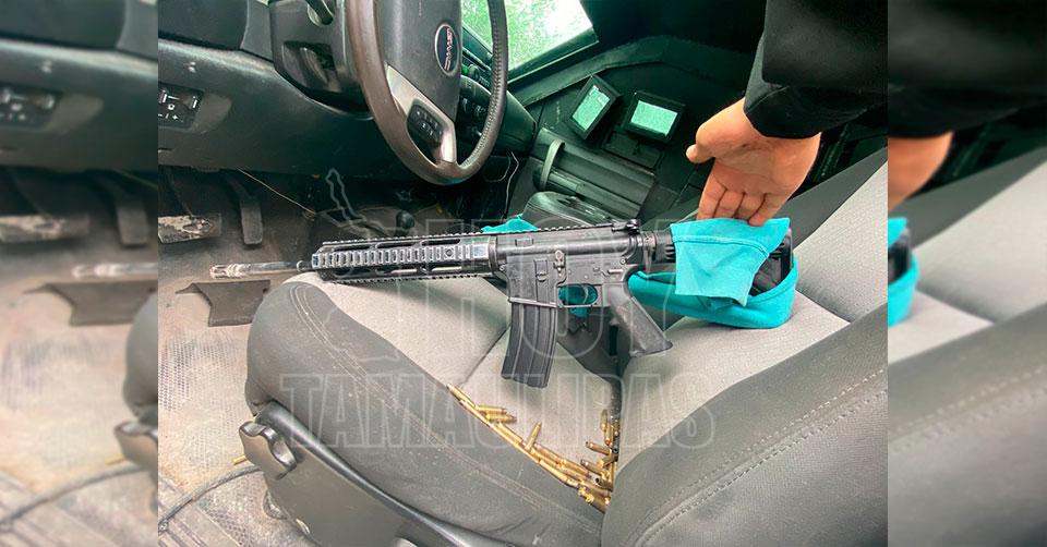 Reynosa, Tamaulipas. – Elementos de la Guardia Estatal lograron asegurar una camioneta con blindaje artesanal y fusiles de asalto esta mañana, tras una persecución y enfrentamiento con criminales.