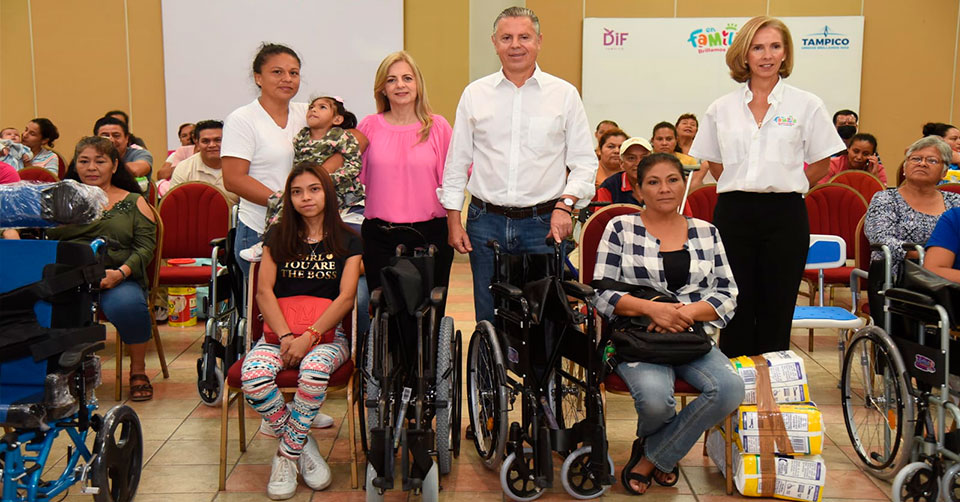 Tampico, Tamaulipas. - En la Casa de la Cultura de Tampico tuvo lugar una nueva entrega de aparatos funcionales por parte del Sistema DIF municipal, misma que fue encabezada por el presidente Chucho Nader y su esposa, Aída Féres de Nader, titular del organismo.