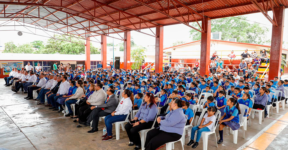 Chucho Nader subrayó que desde 2018 se trabaja de manera permanente en la modernización de la infraestructura escolar, así como en el apoyo académico a los alumnos a través de becas y estímulos educativos; además de la mejora del entorno en las escuelas con obras de pavimentación, alumbrado público, limpieza urbana y fortalecimiento a la seguridad, entre otras acciones.