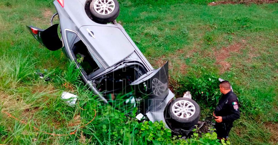 El Mante, Tamaulipas. - Los ocupantes de dos vehículos que se salieron del camino a consecuencia del exceso de velocidad y el pavimento mojado, fueron asistidos por elementos de la Guardia Estatal que realizaban recorrido de inspección y vigilancia por la carretera federal Llera-Mante.