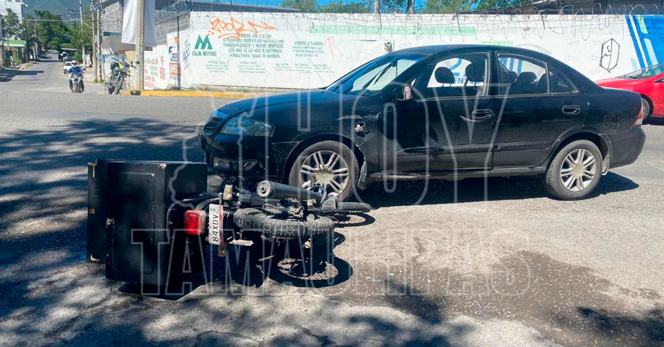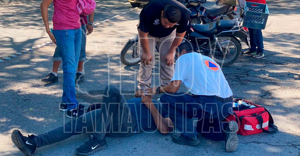 Ciudad Victoria, Tamaulipas. - Con golpes en diversas partes del cuerpo resultó un empleado al estrellar la motocicleta que manejaba contra un vehículo.