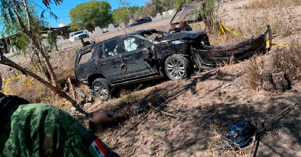 Los guardias estatales persiguieron a los agresores y en una brecha del Ejido La Llorona abatieron a unos de los sujetos armados y aseguraron una unidad con blindaje artesanal de las llamadas monstruos, y armamento.