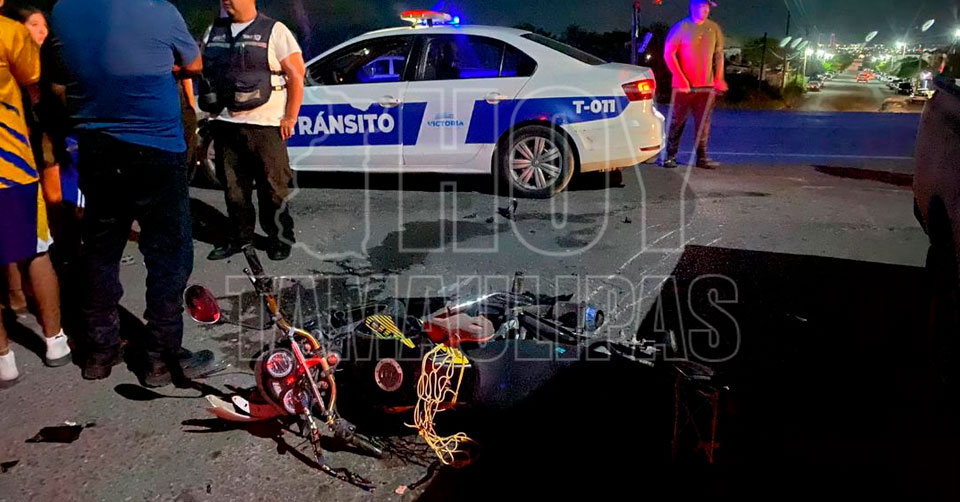 Ciudad Victoria, Tamaulipas. – Un menor de 16 años resultó con lesiones de gravedad luego de chocar la moto que conducía contra un automóvil que presuntamente se le atravesó a su paso, en el Libramiento Naciones Unidad y calle Villa de Llera.