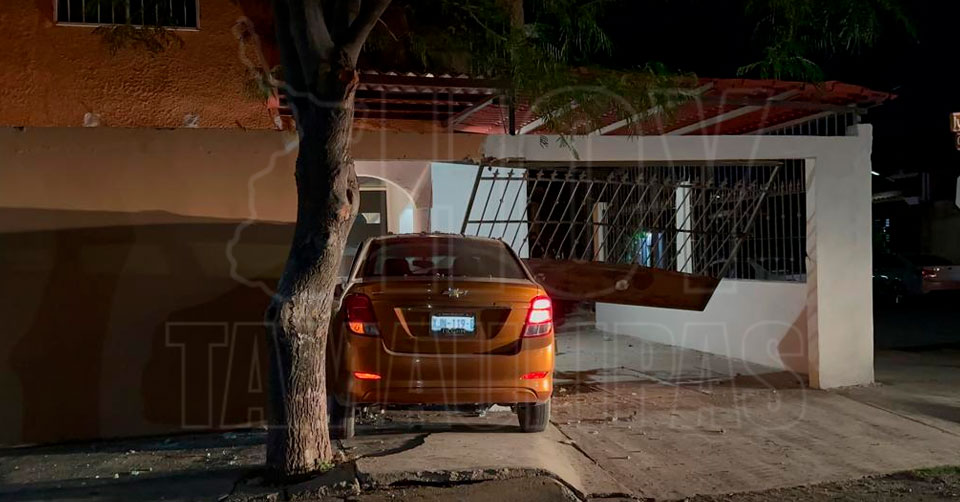 Ciudad Victoria, Tamaulipas. – Un conductor en presunto estado de ebriedad perdió el control de su auto y se metió a una cochera causando daños a la vivienda y derribando una nomenclatura.