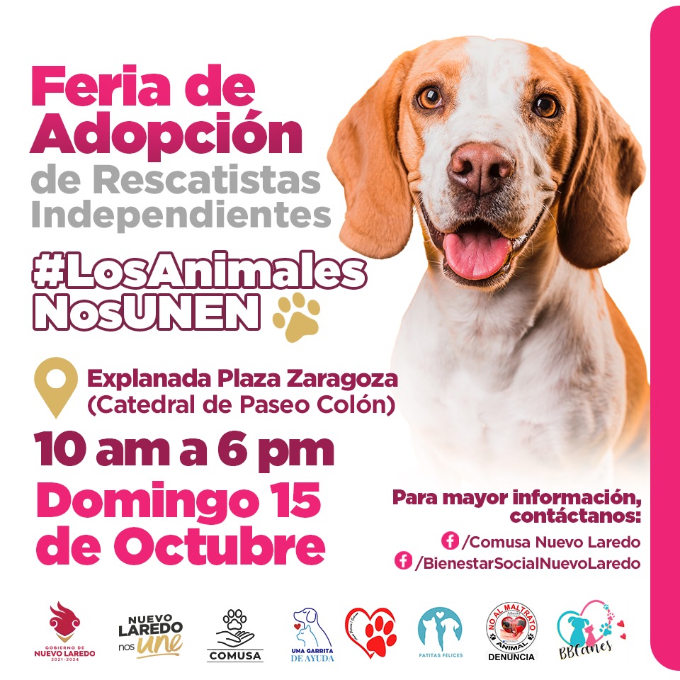 Nuevo Laredo, Tamaulipas.-El Consejo Municipal de Salud Animal (COMUSA), junto a organizaciones independientes de rescatistas locales, llevarán a cabo una Feria de Adopciones con la finalidad de encontrar un hogar para los perros y gatos que han rescatado de las calles.