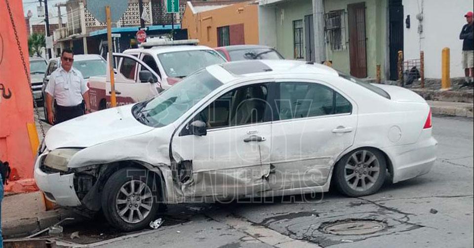 Matamoros, Tamaulipas. - Un obrero de la empresa Kemet provocó un fuerte choque en la calle 10 y Ocampo en Matamoros, al conducir a exceso de velocidad y no respetar el alto.