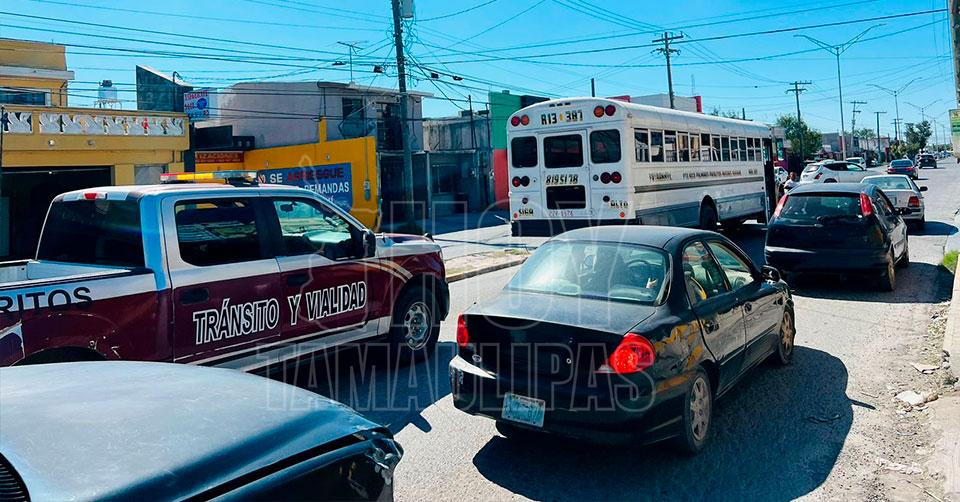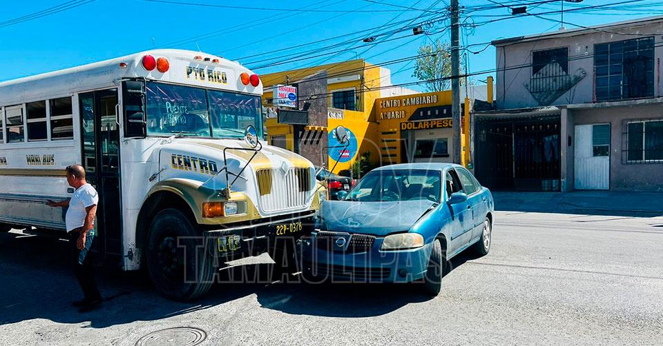 Choque entre auto y microbús dejó dos lesionadas en Matamoros
