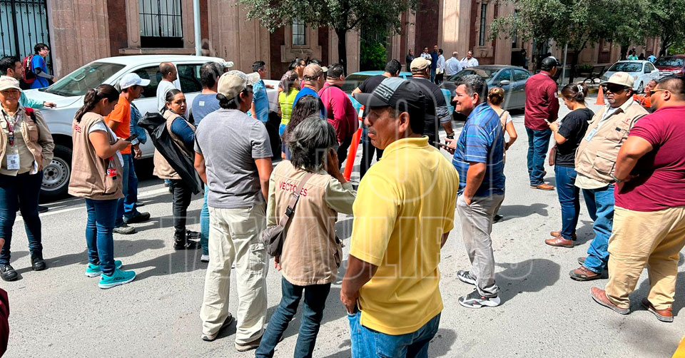 Provenientes de los municipios de Mante, Matamoros, Llera, Victoria y San Fernando, los trabajadores eventuales de Salud se plantaron frente a la Secretaría para presionar por los basificaciones que tienen más de dos años requiriendo.