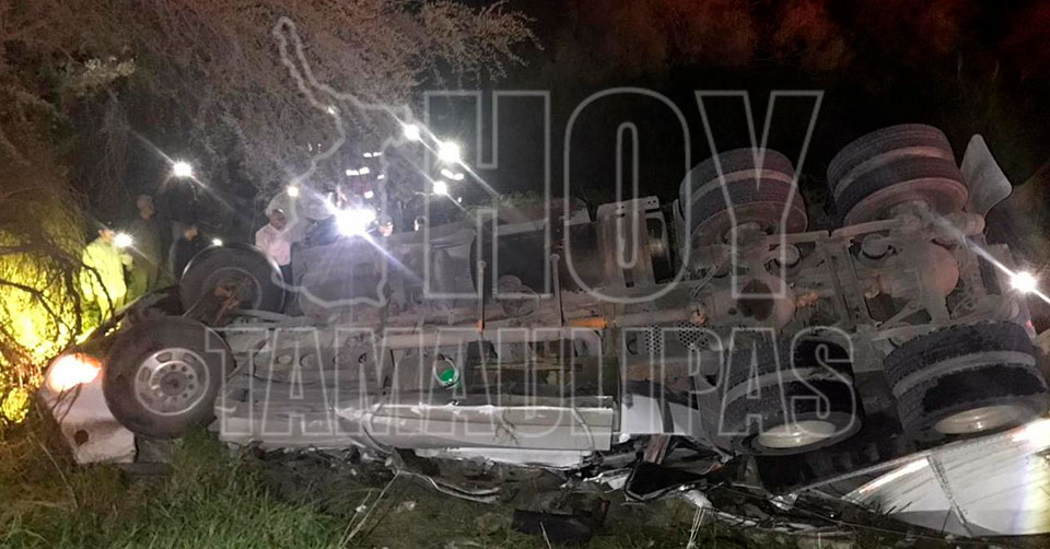 Volcadura de tráiler deja dos heridos graves en Nuevo Laredo