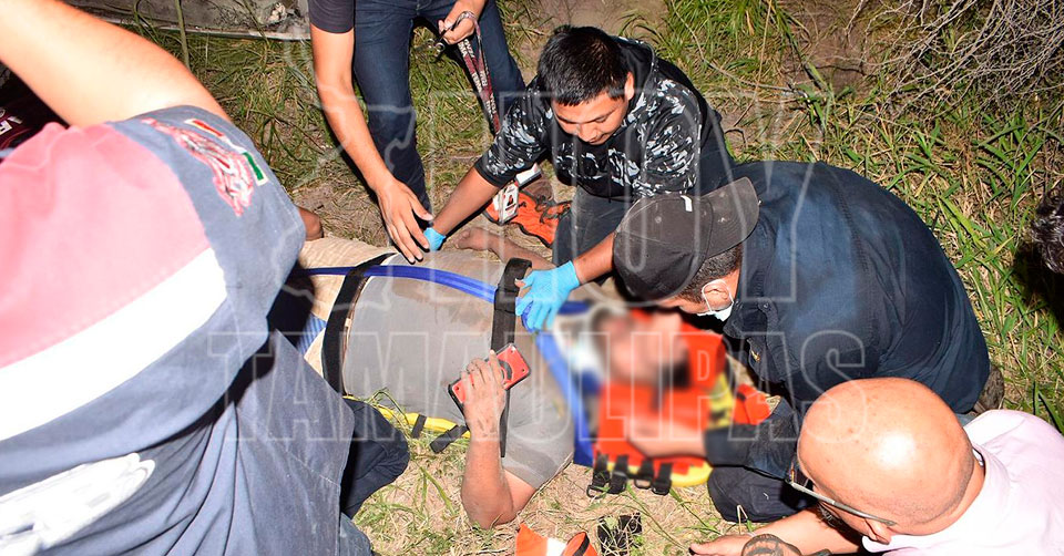 Nuevo Laredo, Tamaulipas. — Dos hombres resultaron gravemente heridos al quedar prensados dentro de la cabina del tráiler en que viajaban, tras volcar sobre la Carretera Aeropuerto de Nuevo Laredo, frente a la Línea Egoba.