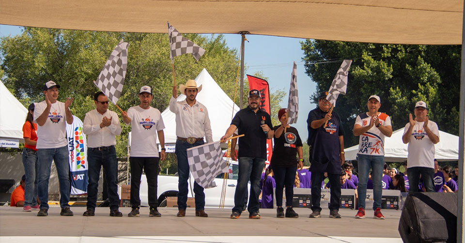 En el inicio de los eventos, el CP. Guillermo Mendoza dio el banderazo de salida de la carrera pedestre de siete kilómetros organizada por el 56 Aniversario de la Facultad de Comercio y Administración Victoria (FCAV) y el 66 Aniversario de la Facultad de Medicina Veterinaria y Zootecnia (FMVZ).