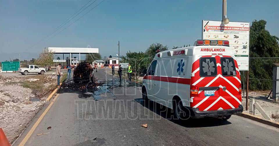 Personal del cuerpo de Bomberos de Tula, Tamaulipas fueron alertados de lo sucedido y acudieron hasta el kilómetro 14 de la carretera que conduce del límite de San Luis Potosí a ese lugar, a la altura de la caseta fitosanitaria.