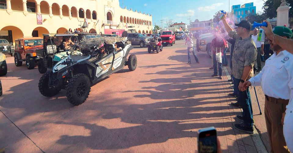 Decenas de cazadores se dieron cita en la salida de la Explanada Independencia, frente al Palacio Federal, de donde salieron con sus vehículos adornados con motivos de cacería.