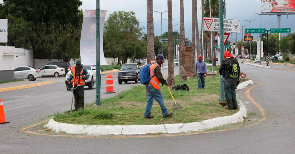 Las avenidas José Sulaimán y Tamaulipas fueron punto de atención de cuadrillas de la Secretaría de Servicios Públicos del Municipio, extendiendo su labor a rotondas de la calle 8, tramos de bulevares y calles aledañas.