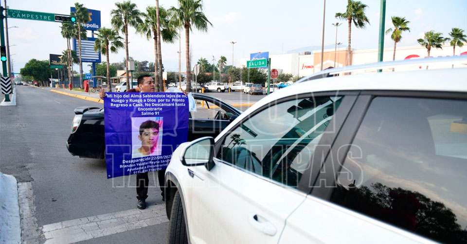 Ciudad Victoria, Tamaulipas. - Un grupo de familiares, amigos y compañeros del joven Brandon Yeudiel Reyna Sánchez desaparecido en Ciudad Victoria el pasado 26 de septiembre, se manifestaron esta mañana frente a casa de Gobierno del Estado de Tamaulipas, exigiendo a las autoridades sea localizado con vida.