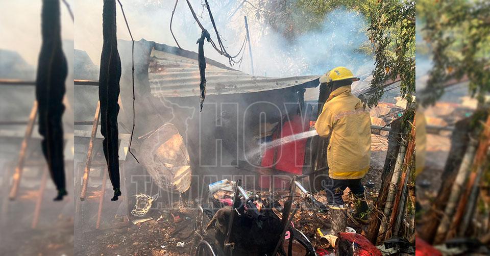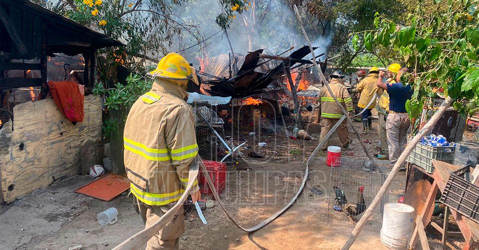 Según se dio a conocer, el fuego arrasó con una cama, dos pantallas, tres puertas y una estufa, además de diversos trastes y un comedor, dos tanques de gas y dos gallos y un pato.