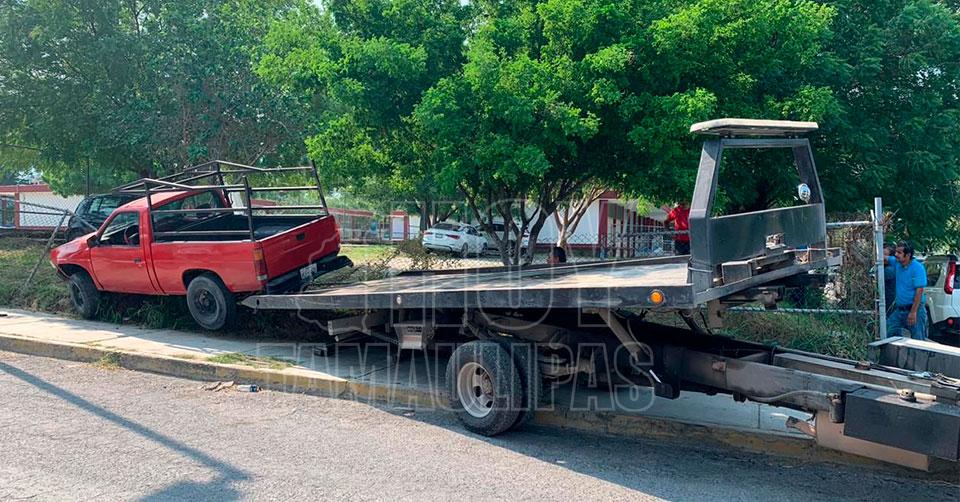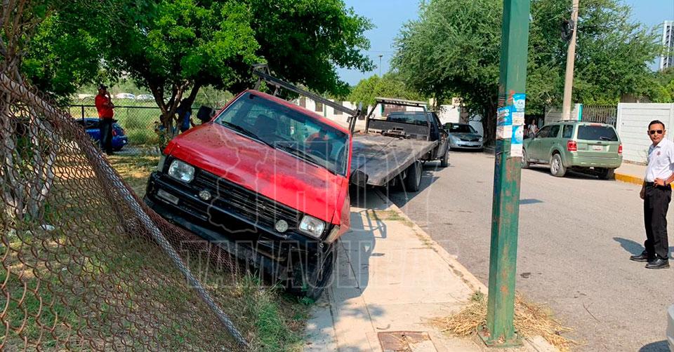 Ciudad Victoria, Tamaulipas. – La falta de precaución por parte de un conductor provocó que se estrellara contra otra unidad motriz que terminó derribando una malla ciclónica en Ciudad Victoria.
