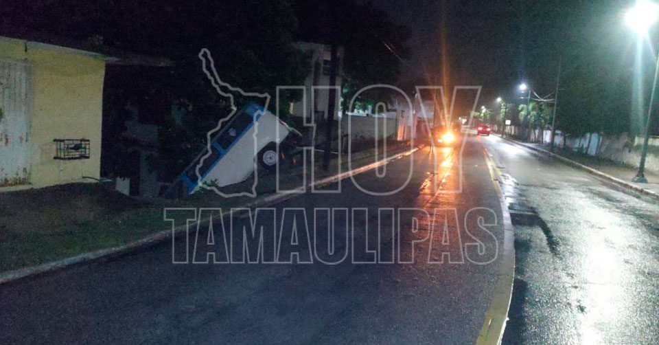 Tampico, Tamaulipas. - El conductor de una Combi que se encontraba en aparente estado inconveniente, se salió del camino y estuvo a punto de caer a un barranco a espaldas del Cementerio Municipal de Tampico, lugar en el que dejó abandonada la unidad.