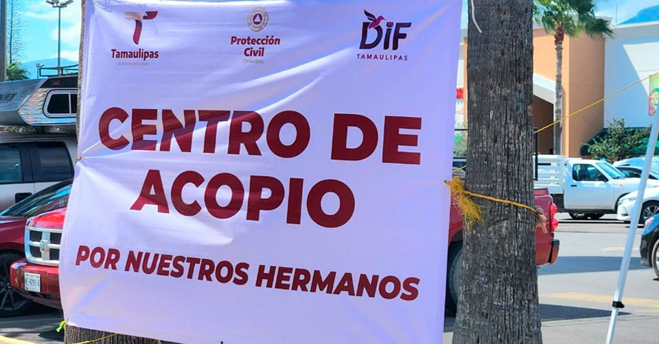 Ciudad Victoria, Tamaulipas. - Tres centros de acopio han sido instalados en Ciudad Victoria para recolectar víveres no perecederos, kits de limpieza y de higiene personal, así como herramientas para la limpieza de escombros para enviarlos en ayuda de personas afectadas por el huracán Otis en Acapulco, Guerrero.