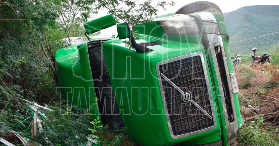 Ciudad Victoria, Tamaulipas. – Un tráiler cargado con 20 toneladas de tomate volcó esta madrugada en el kilómetro 4.5 de la carretera Rumbo Nuevo, luego de que el chofer presuntamente se durmió al volante.