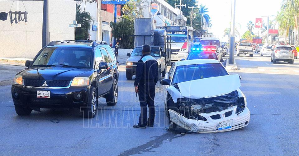 Dos autos colisionados causan caos vial en Tampico; apoya Tránsito a fluidez