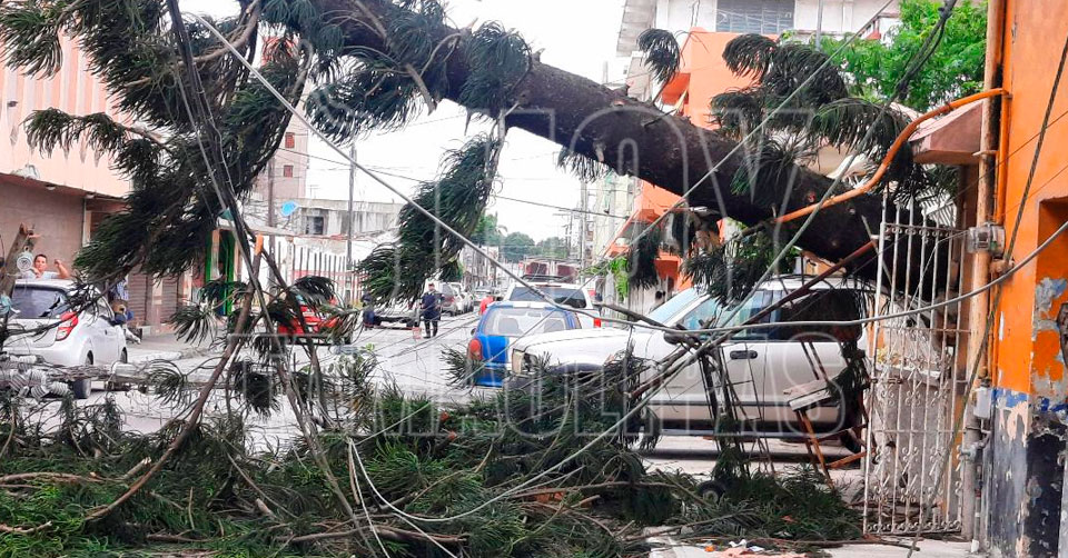 Vientos del frente frío 8 tumban enorme árbol en Tampico; PC no reporta más incidentes graves