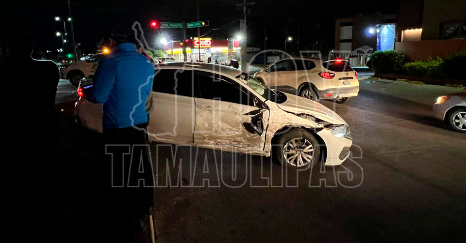 Tampico, Tamaulipas. - De nueva cuenta la intersección que forman la Prolongación de la calle Francita y la Diagonal Sur-Norte en Tampico, fue el escenario de un fuerte choque entre dos automóviles que en esta ocasión dejó a dos personas lesionadas y cuantiosas pérdidas materiales.