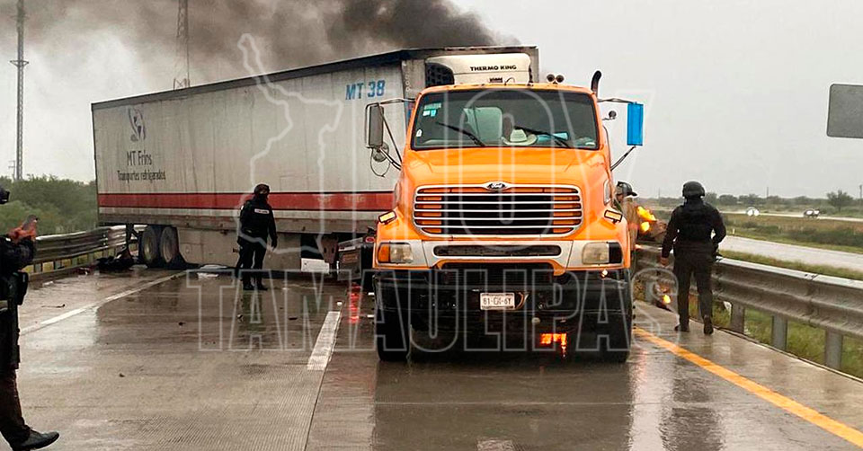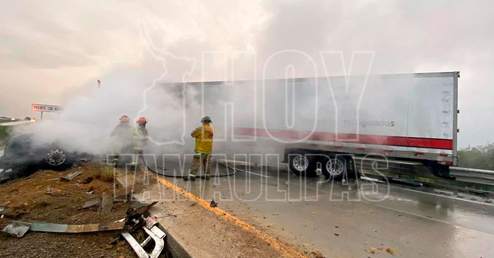Tráiler se incendia al chocar con otro cerca de Nuevo Laredo