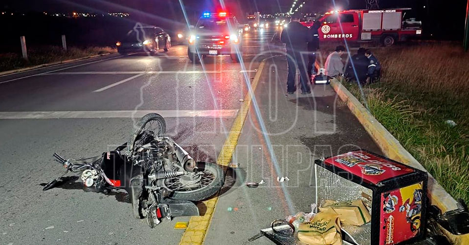 Agentes de Tránsito también acudieron al sitio del accidente y realizaron el peritaje correspondiente, así como el aseguramiento de la motocicleta Itálika 150 modelo 2020, la cual fue enviada al corralón de una empresa privada.