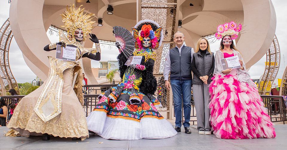 Además, se contó con el concurso de disfraces de catrinas, que se dividió en dos categorías, libre y categoría infantil, donde el alcalde Adrián Oseguera Kernion, junto a su esposa Ana Cristina, hicieron entrega de reconocimientos, así como su respectivo premio económico a los ganadores de este desfile.