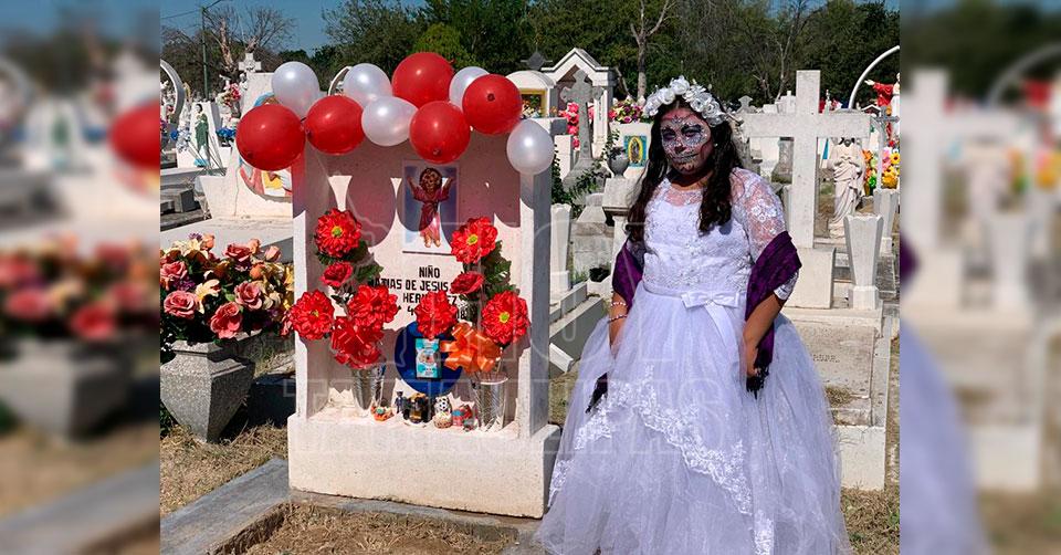 “Venimos a ver al niño, falleció en el vientre, ya hace cinco años, venimos año con año a festejar el día de los Santos”, dijo Ana Delia Hernández.