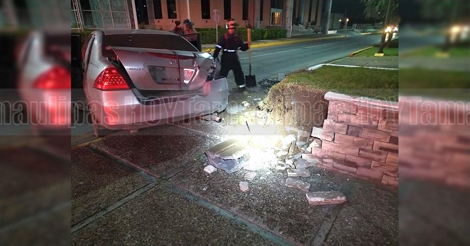 Nuevo Laredo, Tamaulipas. - Una mujer sufrió un accidente vial al chocar su automóvil contra una jardinera en el monumento a la Madre, ubicado en la Avenida Reforma de Nuevo Laredo.