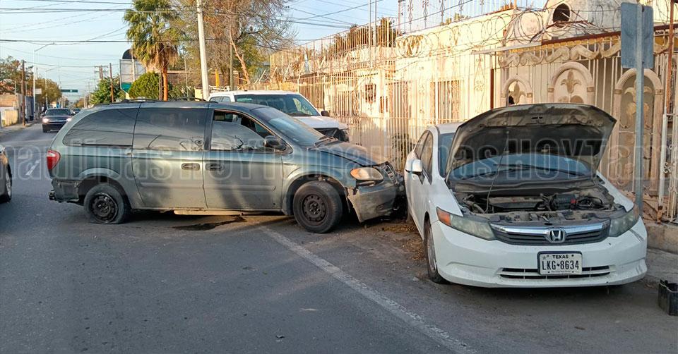 Nuevo Laredo, Tamaulipas. — Un choque entre un automóvil y una camioneta ocurrió en un transitado crucero de la colonia Guerrero, dejando como saldo dos mujeres heridas y daños materiales muy cuantiosos.