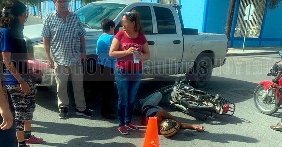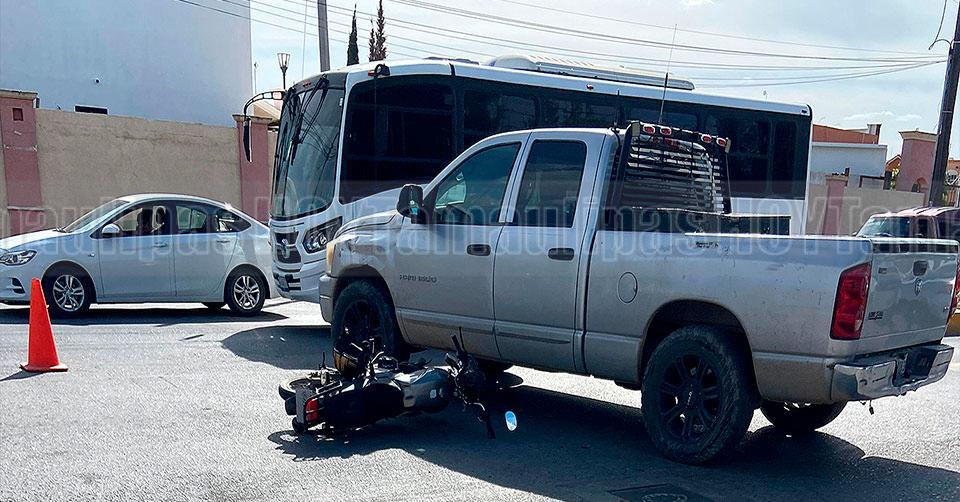 Motociclista se fractura al chocar con camioneta en Nuevo Laredo