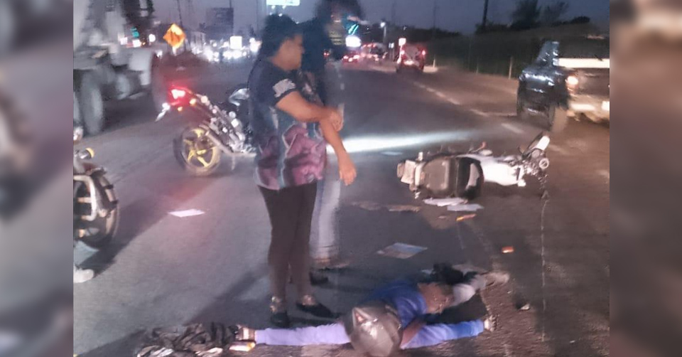 Derrapa motociclista y se lesiona sobre la Avenida de la Industria en Altamira