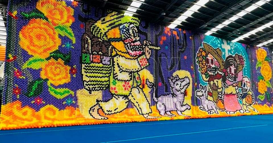 Esta escultura de globos que tuvo temáticas mexicanas, obtuvo el récord Guinness del Mural Más Grande, además del segundo de personas elaborando una escultura de globos, al mismo tiempo.