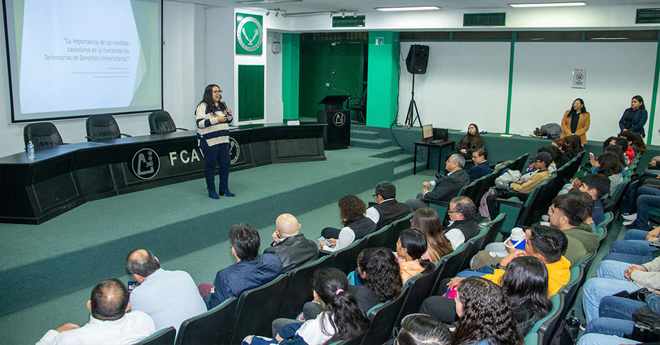El mensaje de bienvenida estuvo a cargo del Dr. Jesús Gerardo Delgado Rivas, director de la FCAV; y la conferencia inaugural fue impartida por la presidenta de la REDDU Dra. Urenda Queletzú Navarro Sánchez, quien además es titular de la Defensoría de los Derechos Universitarios de la Universidad Autónoma de San Luis Potosí.