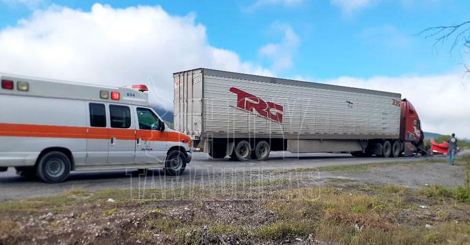 Trailero resultó lesionado al estrellarse contra una pipa en la Tula-Victoria