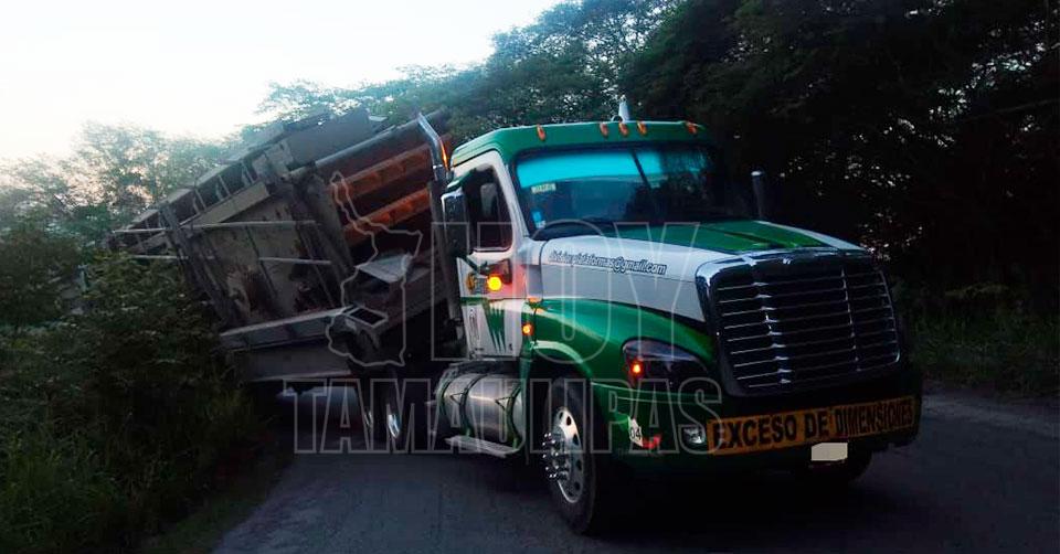 Vuelca tráiler que transportaba maquinaria pesada en la región de El Mante