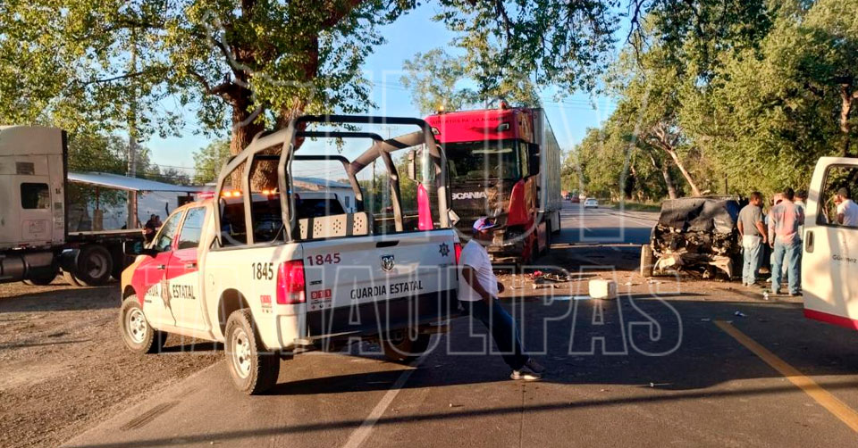 Padilla, Tamaulipas.- Una persona perdió la vida tras el impacto entre una camioneta y un tractocamión en la Carretera Federal 85 Victoria-Monterrey, informó la Guardia Estatal.