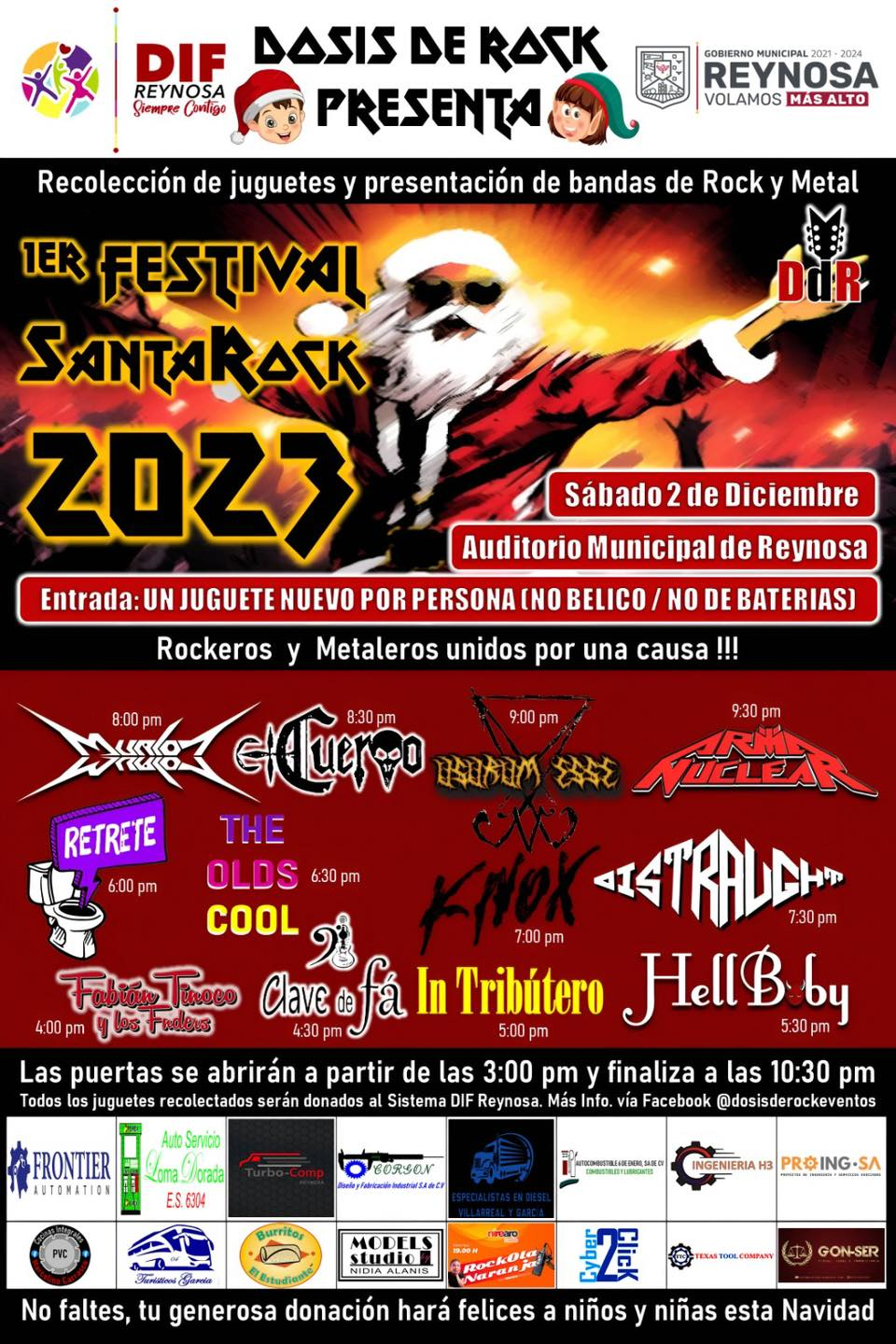 El evento denominado Santa Rock 2023 se llevará a cabo el próximo dos de diciembre en el Auditorio Municipal, siendo el costo de entrada de un juguete por persona.