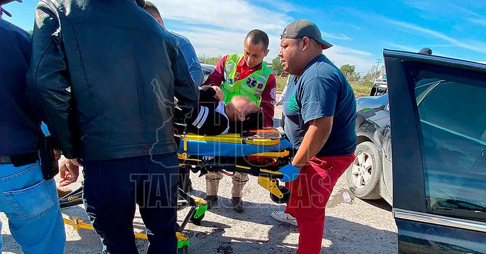 Nuevo Laredo, Tamaulipas.— Una mujer embarazada y un hombre de la tercera edad sufrieron lesiones consideradas graves, en un accidente vehicular ocurrido en una importante avenida de la colonia Manuel Cavazos Lerma en Nuevo Laredo.