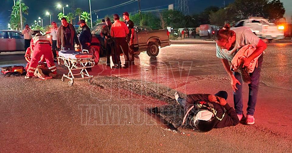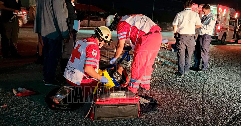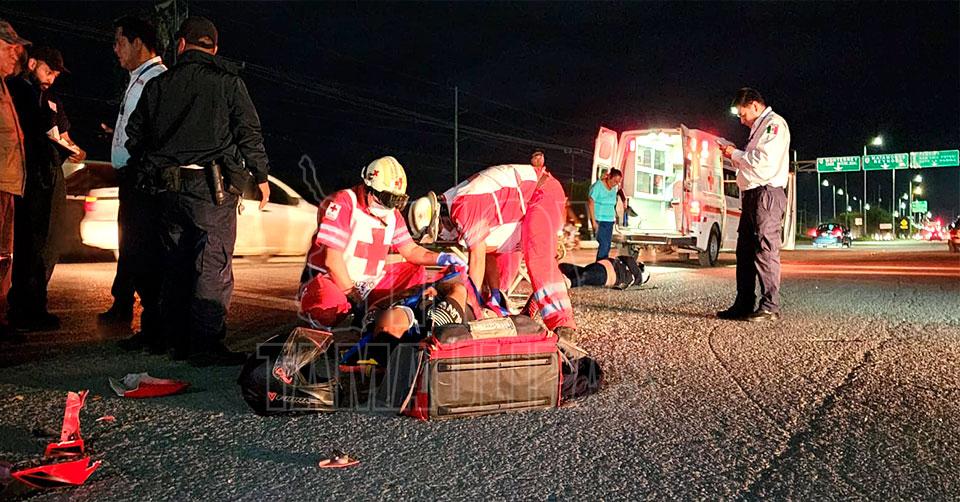 Pareja que viajaba en moto sufre accidente vial en Ciudad Victoria