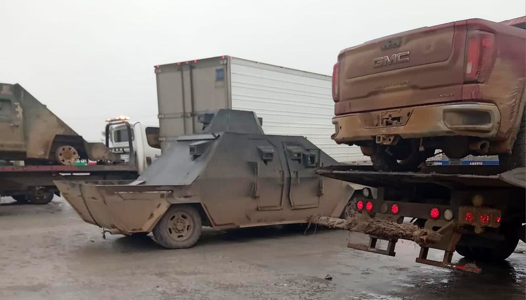 Reynosa, Tamaulipas. –Tras los bloqueos y enfrentamientos de este fin de semana en la carretera Reynosa-San Fernando y lugares aledaños, la Guardia Estatal logró el aseguramiento de cuatro vehículos tipo ‘monstruo’, fusiles de asalto y equipo táctico.