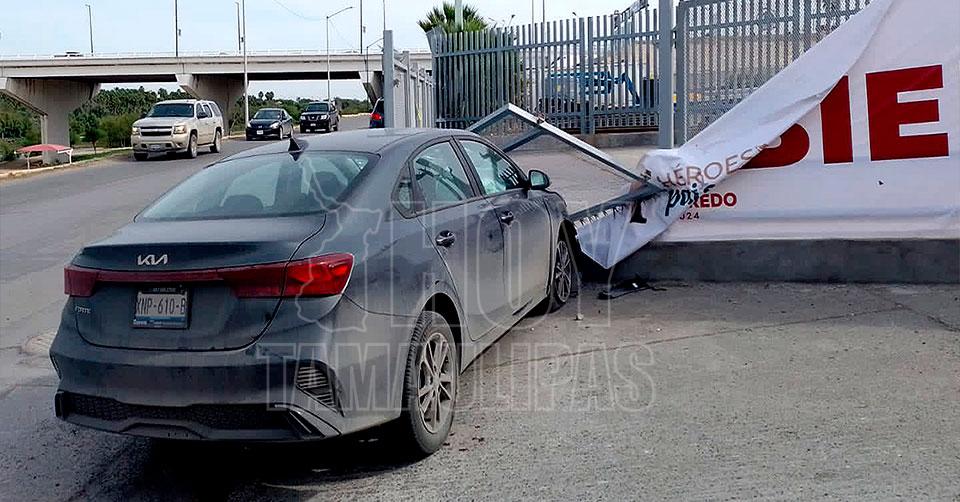 Nuevo Laredo, Tamaulipas. - Un joven resultó con golpes leves luego de chocar su automóvil contra la cerca perimetral del Centro de Internación Temporal de Vehículos (CITEV), ubicado en el Bulevar Colosio de Nuevo Laredo, tras supuestamente evitar impactar de frente una camioneta.