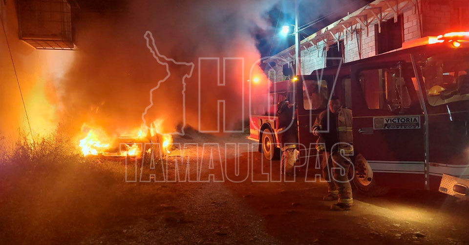 Incendio arrasó con un auto Chevy en la Américo Villarreal en Victoria