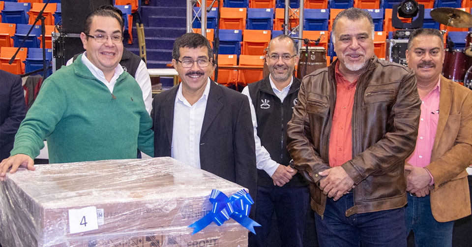 Durante el evento realizado en el Gimnasio Multidisciplinario, el rector estuvo acompañado del secretario de Administración, Marco Antonio Bastarse Contreras; y del secretario general del Sindicato Único de Trabajadores de la UAT (SUTUAT), Oscar Valdez Ávila.
