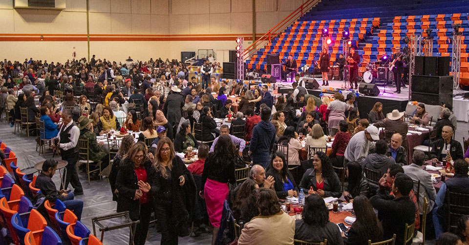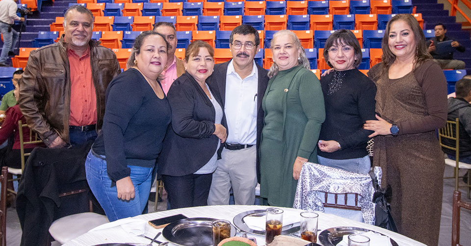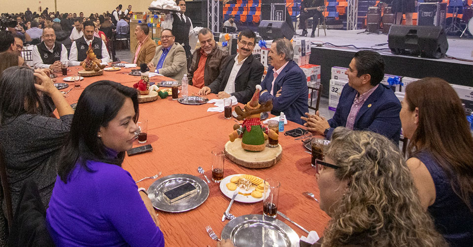 Ciudad Victoria, Tamaulipas. - El rector de la Universidad Autónoma de Tamaulipas (UAT), MVZ. Dámaso Leonardo Anaya Alvarado, presidió el tradicional festejo navideño que se ofreció a los trabajadores sindicalizados del Campus Victoria, donde destacó el compromiso de la institución por seguir mejorando las condiciones laborales de su personal.
